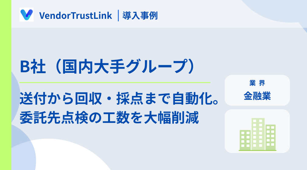 国内大手グループ企業|チェックシートの送付から回収・採点まで自動化。委託先点検の工数を大幅に削減。