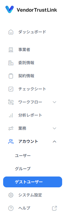 ゲストユーザー一覧は、登録されている委託先のゲストユーザーの一覧を確認する機能です。