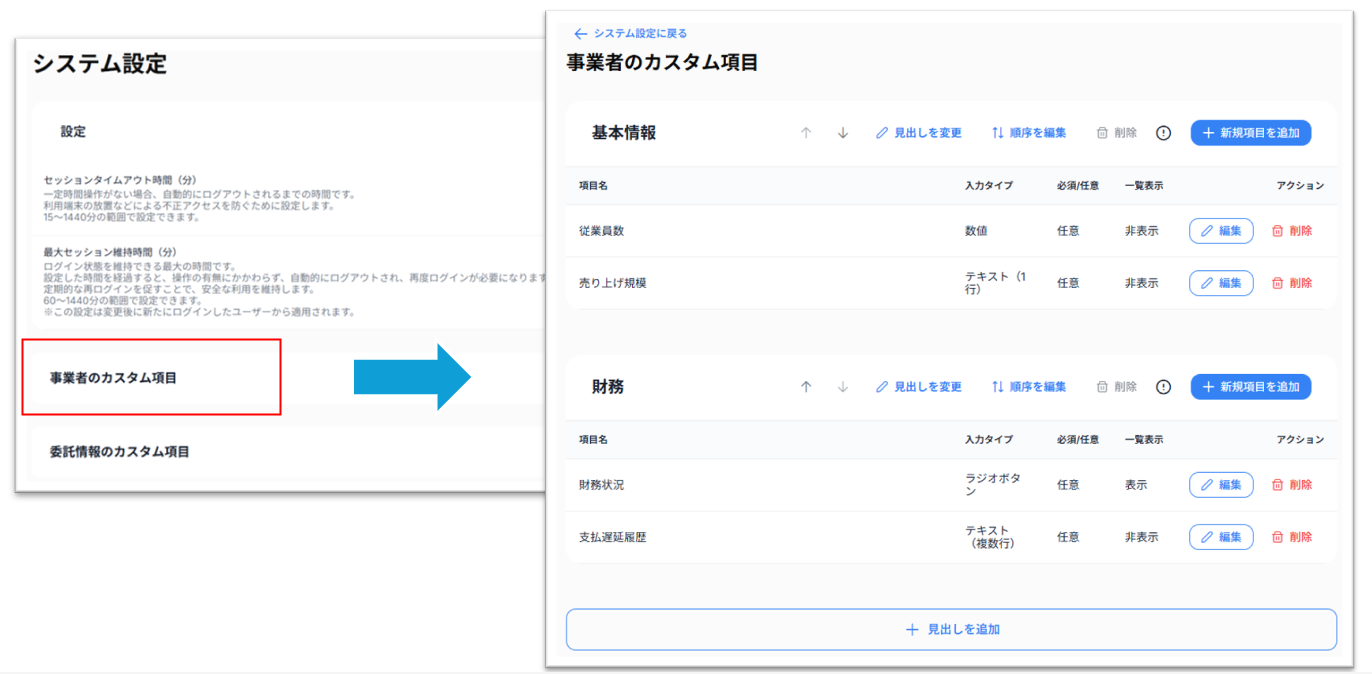 本機能により、事業者にテナント独自のカスタム項目を追加できるようになりました。
