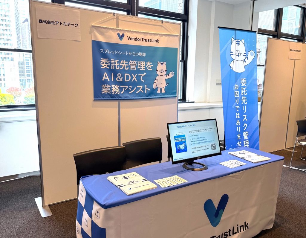 弊社ブースでは、委託先リスク管理ツール「VendorTrustLink」を用いた委託先管理のDX化や運用効率化の方法をご紹介しました。